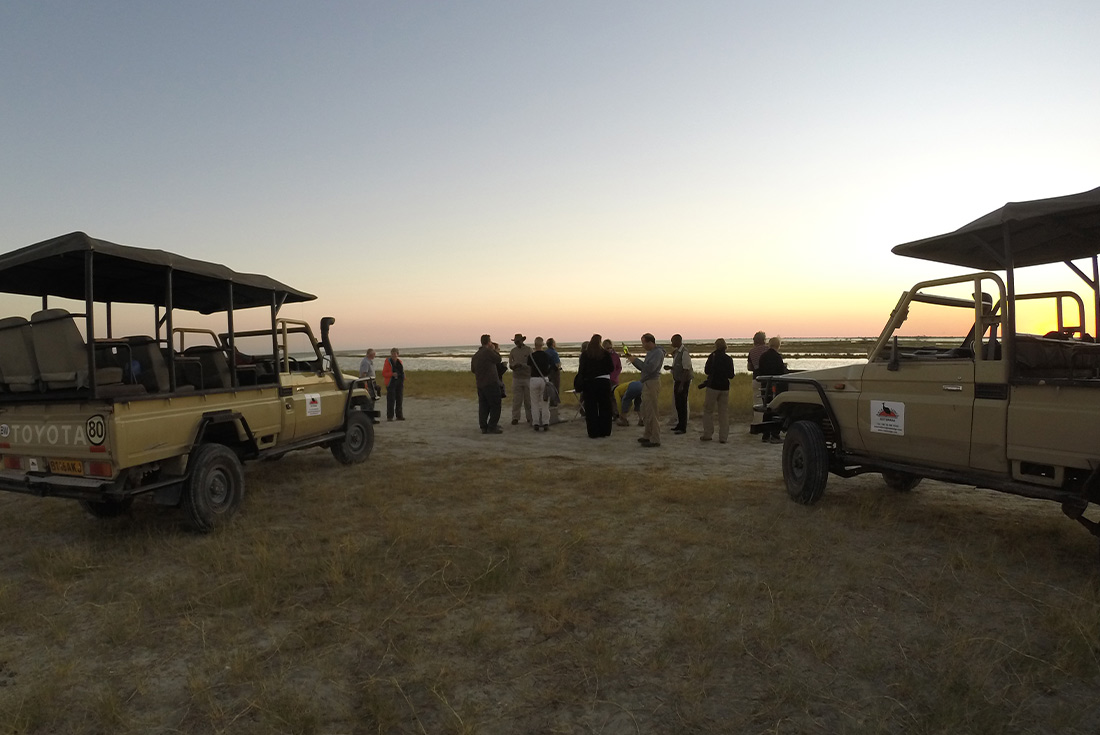 Discover the vast expanse of the Makgadikgadi Pans – one of the world's largest salt flats. Watch the sunset over the baobab trees and look for meerkats as you enjoy some refreshments in the heart of the desert.