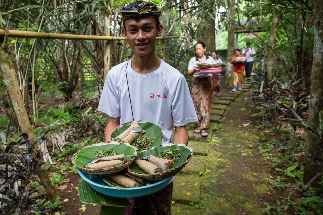 While travelling with us you'll experience the vast array of wonderful food available in the world. Your group leader or local representative will be able to suggest restaurants to try during your trip. To give you the maximum flexibility in deciding where, what and with whom to eat, generally not all meals are included in the trip price. This also gives you more budgeting flexibility. As a rule, our groups tend to eat together to enable you to taste a larger variety of dishes and enjoy each other's company. If you have dietary requirements and/or food allergies, please let your booking agent know prior to departure., INDONESIAN FOOD: Here are 10 quintessential dishes you have to try while travelling in Indonesia: https://www.intrepidtravel.com/adventures/what-to-eat-in-indonesia/ VEGETARIANS & VEGANS: Strict vegetarians should be aware that a lot of Indonesian cooking contains fermented shrimp paste (terasi) as a basic ingredient. Chicken and eggs are also common in many dishes. Although there are many vegetarian options available, please ensure you are specific as possible when ordering food to ensure that your meal suits your dietary needs. If you are travelling to Ubud, see our guide to vegan and vegetarian eats: https://www.intrepidtravel.com/adventures/vegan-vegetarian-guide-to-ubud/