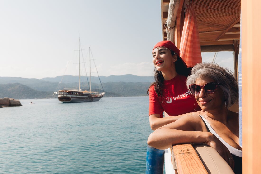 This trip is aboard a traditional Turkish gullet (a traditional wooden Turkish motor sailing boat). All cabins will have ensuite bathrooms and you’ll stay in a mixture of twin share and double bed cabins, all on the same deck. It’s recommended that you pack light, as cabins are cosy., All cabins will experience a light engine noise when the ship is moving (and occasionally when you drop anchor). It’s probably worth packing earplugs if you’re a light sleeper., A good swimming ability is essential on this trip to enjoy all activities., Many meals are included onboard the boat. Where meals are not included, you’ll have time on land in beachside towns and resort towns for optional meals., Some activities and excursions will involve a bit of walking. You’ll be visiting ancient sites and historical places, and at times you may be walking on uneven ground in hot conditions. If you have any concerns, please speak to your local leader., If you’re travelling with your own group of friends or family and would like to book a private departure on this sailing trip, our Tailor-Made team will be happy to help: https://www.intrepidtravel.com/tailor-made