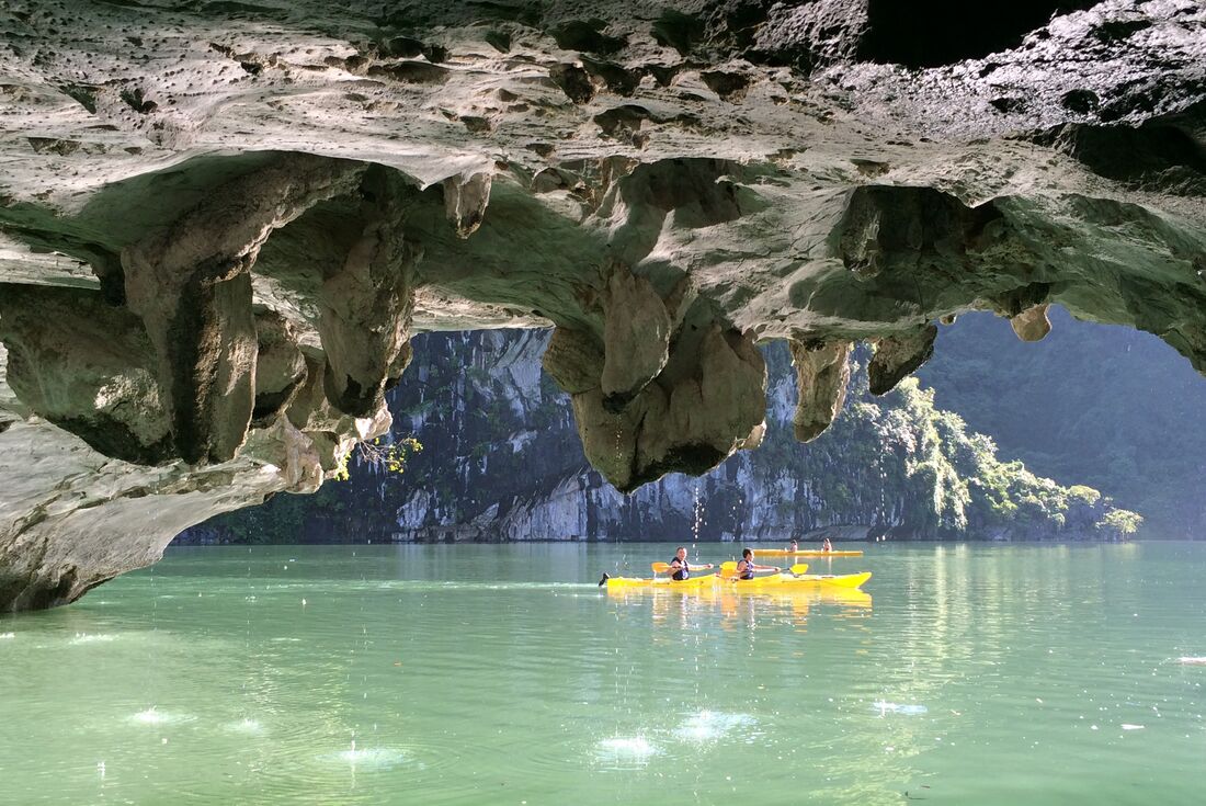 Cruise a sea of limestone karsts, blue-green waters, mysterious caves and ancient jungle on an unforgettable boat trip in Lan Ha Bay, a less-touristy but equally stunning area to Ha Long Bay.